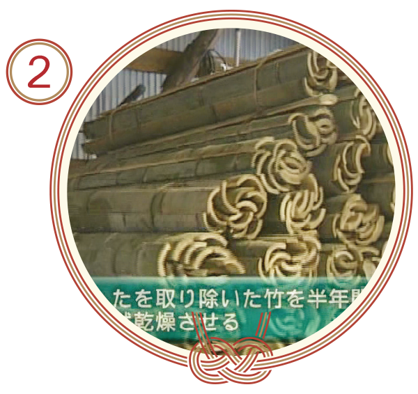 竹片經半年自然風乾,保存孟宗竹樹天然成效。